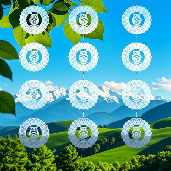 Bird Deterrents for Outside Owl Bird Scare Discs 3D Shiny Helix Wind Spinners, Reflective Bird Reflector & Stainless Steel Outdoor Garden Décor Sculpture Ornaments, Scare Birds Away from Yard Patio