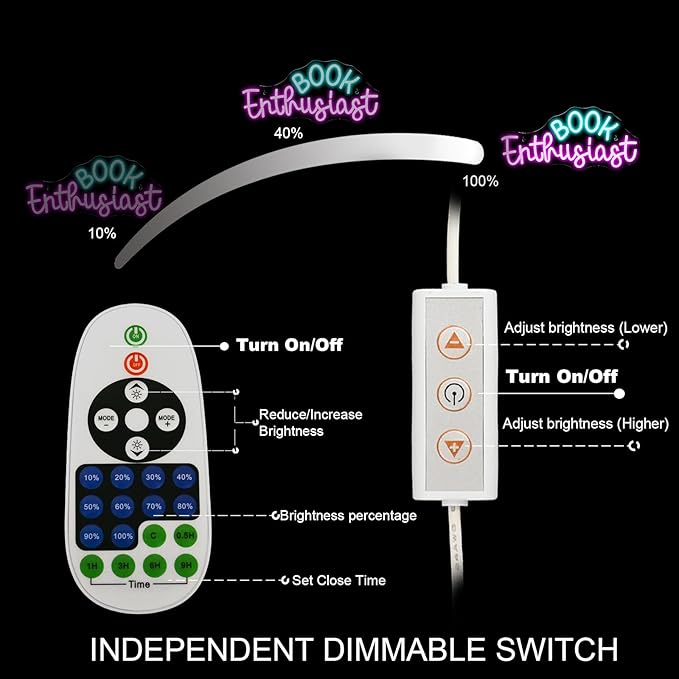 - Neon sign design: "BOOK Enthusiast" neon light, adding a touch of glow to any room! Whether you want to create a cozy atmosphere in your bedroom or living room, show your friends and family that your home is their happy place, or give a special gift to your loved ones
