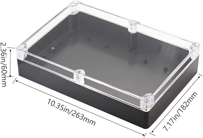 - 【Size】- Outer size of the project box: 10.35"x 7.17"x2.36"(263 x 182 x60 mm); Inner size of the project box:10.04" x6.93" x 2.04" (255 x176 x52mm)