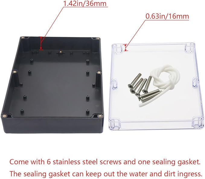 - 【Clear Cover Black Waterproof Box】– The Upgraded version is made of PC, ABS, Transparent cover outdoor waterproof box offers visual inspection of the internal projects, Easily grasp the working status of the project.