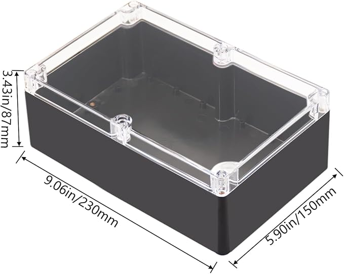 - 【Size】- Outer size of the project box:9.06"x5.90"x3.43"(230 x 150 x87 mm); Inner size of the project box:8.7" x5.59" x 3.11" (221 x142 x79mm)