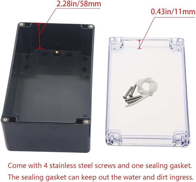 - 【Size】- Outer size of the project box: 7.87"x 4.72"x2.95"(200 x 120 x75 mm); Inner size of the project box:7.59" x4.4" x 2.67" (192 x112 x68mm)