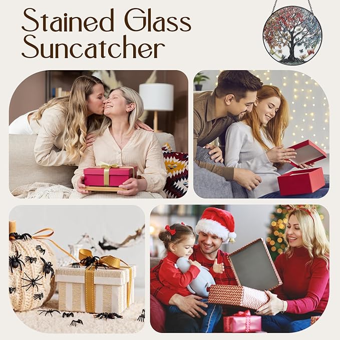 Tree of Life Garden Sun Catcher, Stained Glass Window Hanging, Suncatchers for Windows Hanging, for Friends, Family, and Women 6.31 * 6.31