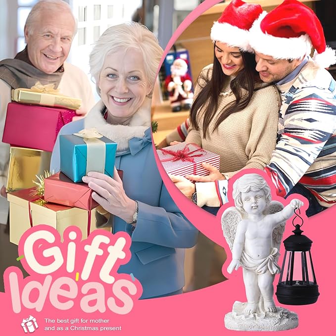 Goodeco Cherub Statue with Solar Lantern - Angel Statue for Garden Patio Yard Porch Lawn Outdoor Decor, Angel Figurines Memorial Spiritual Gifts