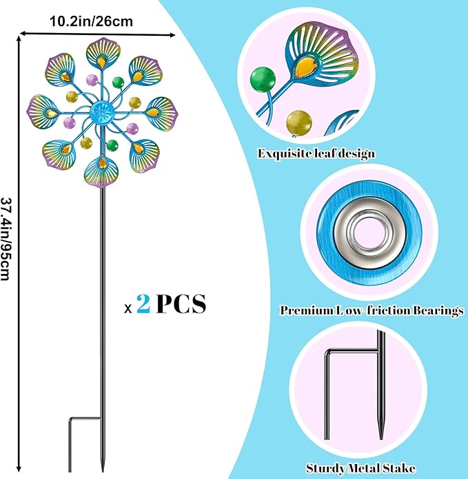 - Easy to Install: The standing wind spinner doesn't need extra installation tools, just tighten the parts according to the instructions and the installation is complete. Built for your convenience, it is recommended to make sure the soil is moist when inserting the wind sculpture