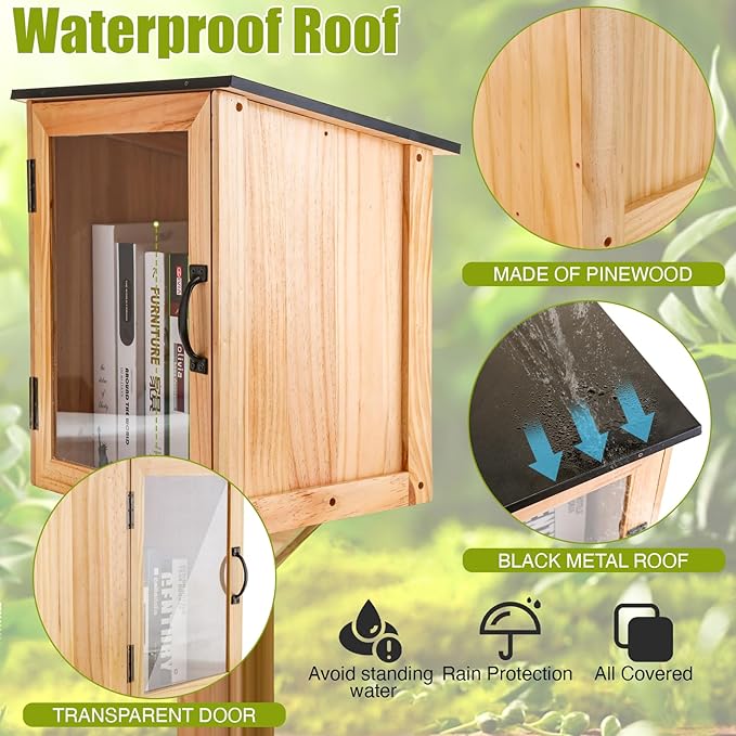 - Durable and Practical - Handmade from top-quality pine wood, our outdoor storage box is robust and enduring. Its clear window lets you spot your next read easily while the magnetic latch and metal top offer book protection and waterproofing
