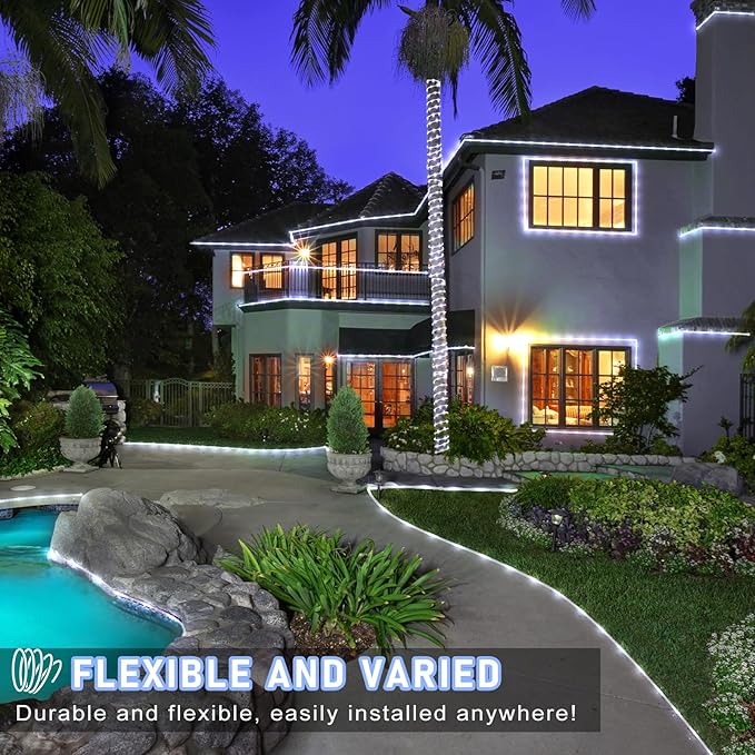 - 【Safe and Reliable】- The Christmas lights outdoor is covered with a transparent and thick PVC tubes that allows full 360° all-round lighting, delivering a full and even lighting experience. Plus, the led rope lights feature a 30V low-voltage power adapter, it won't overheat for a long time