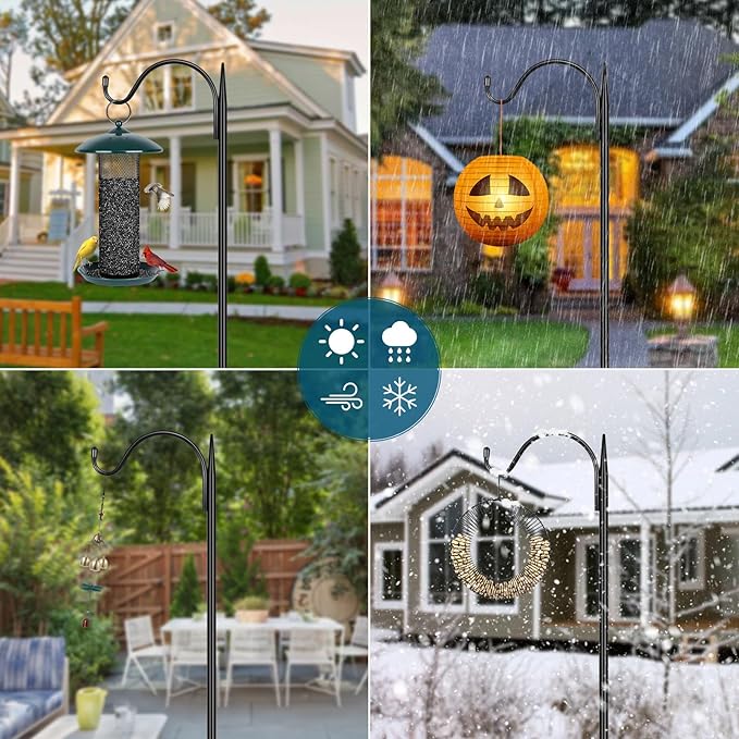 - 【MULTIPLE APPLICATIONS】Premium metal Iron bird feeder pole can be used to hang bird feeders, flower pots, solar lights, lanterns, festival decorations, baskets, wind chimes by your window or the garden path. These heavy duty hangers are also very suitable for hanging flower balls on both sides of the wedding aisle, which will make your wedding more elegant and grand.