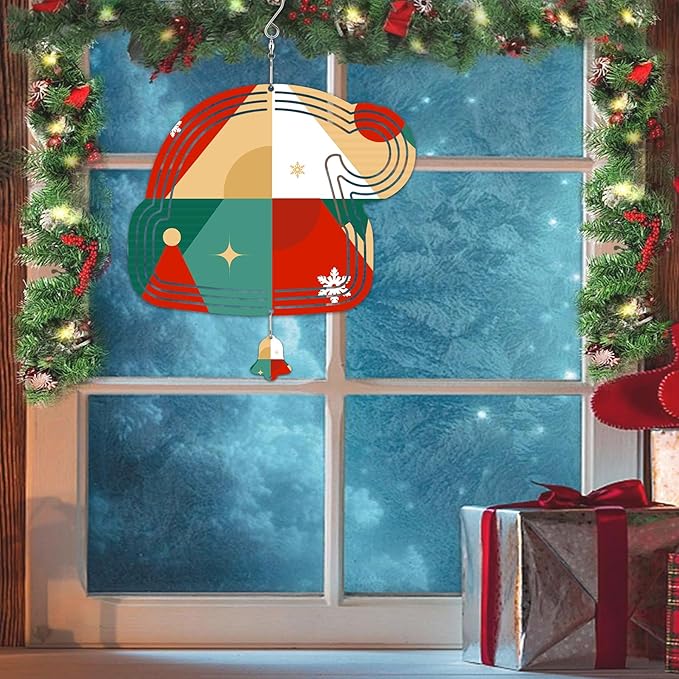 Sublimation Wind Spinner Blanks, 10 Inch 3D Aluminum Metal Hanging Wind Spinner Bulk for Garden Yard Outdoor, Window Porch Decoration for Heat Press Transfer DIY (23. Santa hat-6pcs)