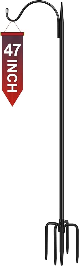 - 【STABLE 5 BASE PRONGS】There are 5 sharp prongs at the bottom of the bird feeder stand, which improves the stability and firmness. The unique shape of the shepherd's hook add beauty and elegance to your garden. Simple design can be match with more hanging items. Your garden will become delicate and charming.