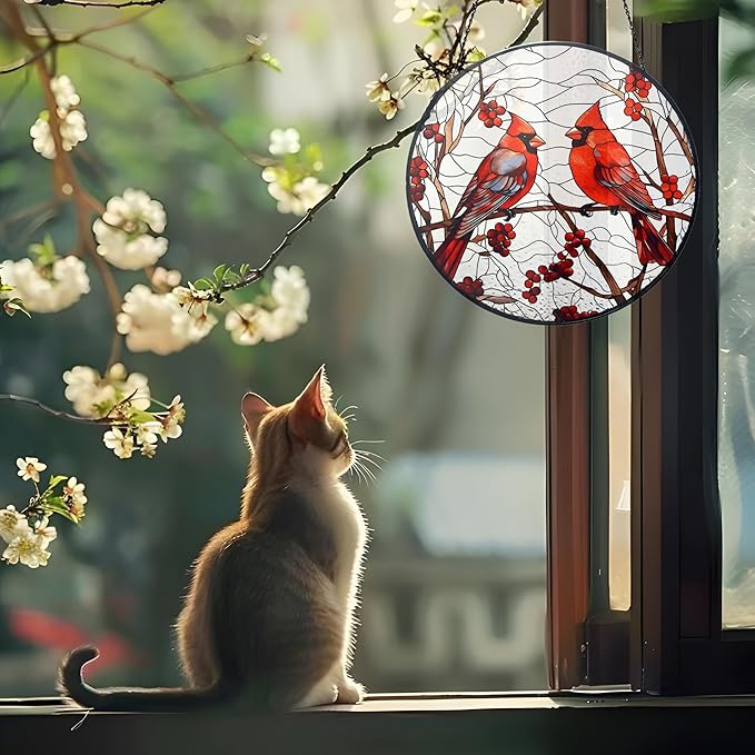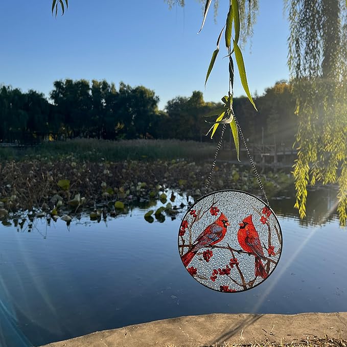 - Stained Glass Window Hanging: The cardinal red bird glass suncatcher is meticulously handcrafted from high-quality glass, providing a stunning stained glass ornament that adds charm and elegance to any setting