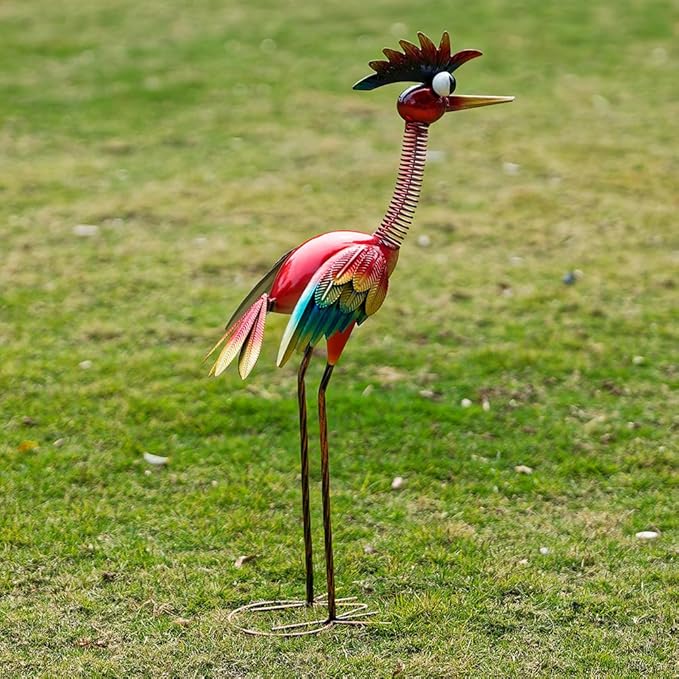 - Attractive Design: The rooster garden sculptures & statues have a unique design, with shaking wings and a neck designed as a movable spring to add fun and interaction. The feathers on the garden statues for outside are colorful and suitable for garden decoration
