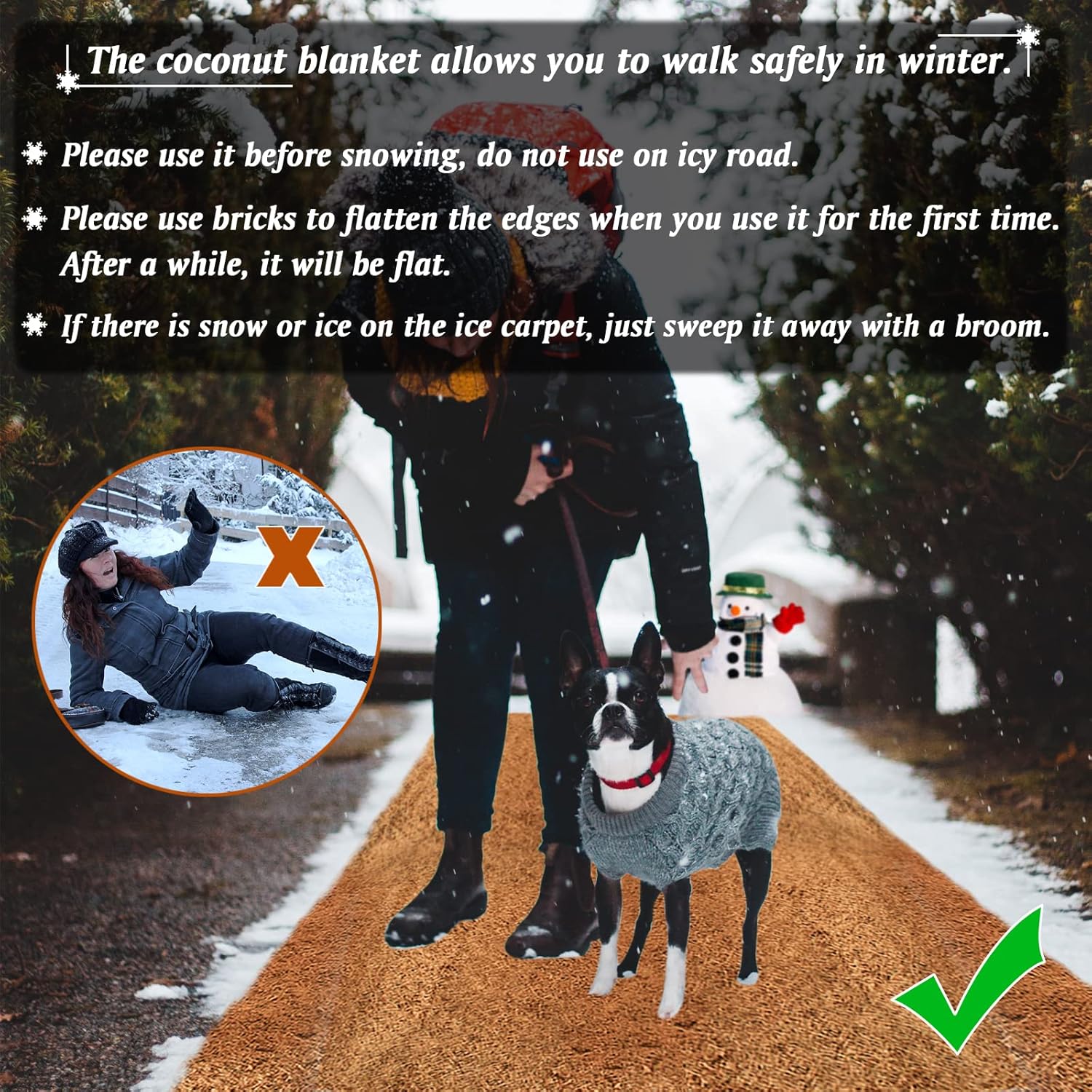 - 🌴【Comfortable, Safe and Reliable】: 100% natural coconut fiber, it is safe for your families, your pets and yourself, it is non-slip, so you can rest assuranced when you walk on it in snowy day